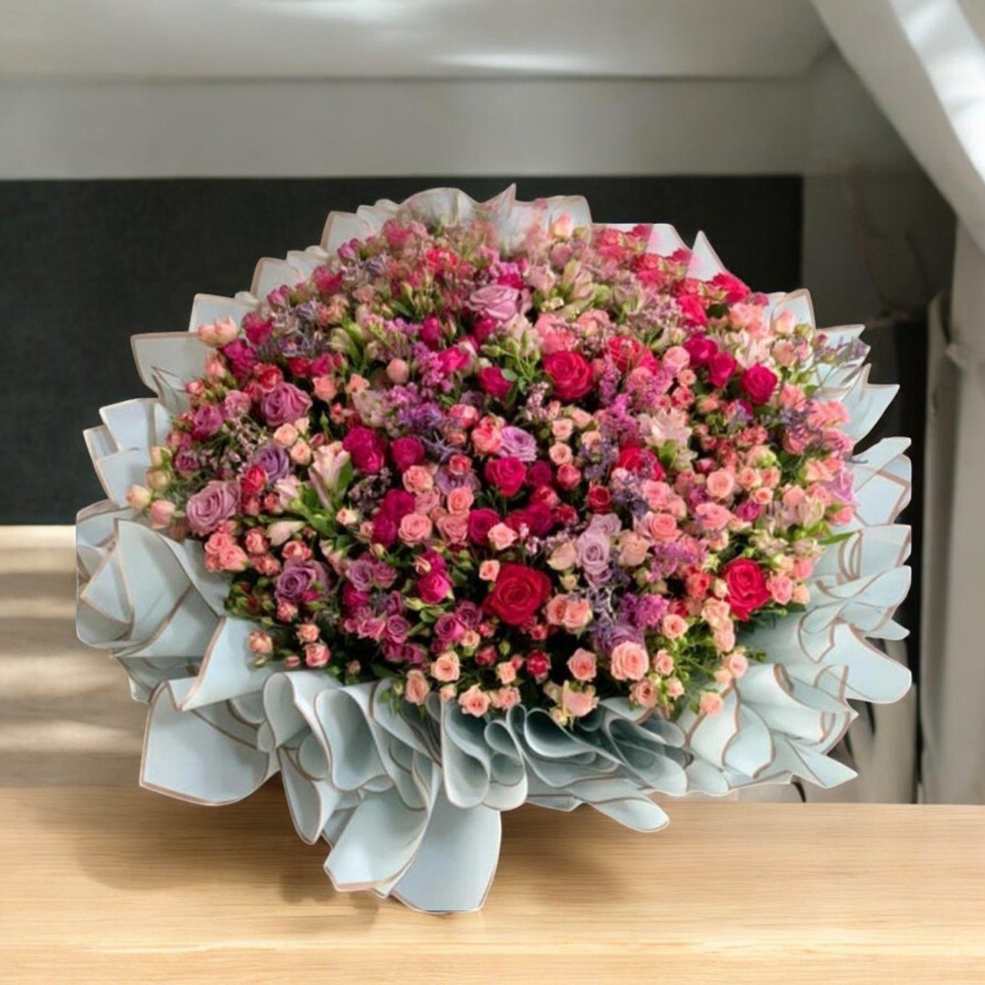 باقة كلاسيك من ورد طبيعي بالورد البيبي جوري الانيق المتنوع