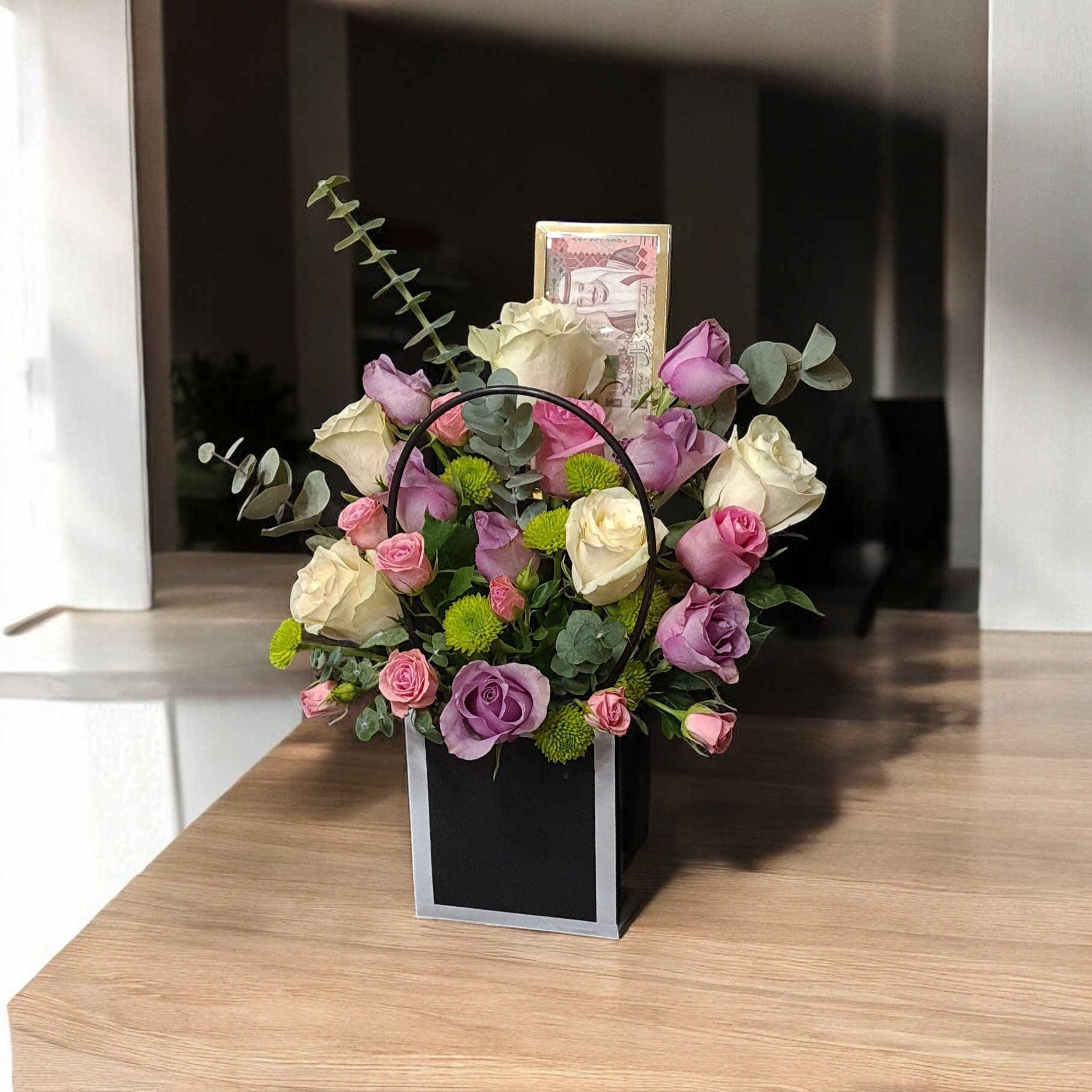 كيس من الزهور المتنوعة مع ظرف الاكريلك