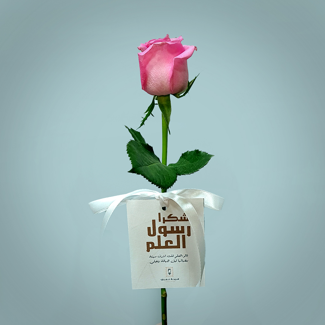 وردة جورية ( حبة ورد واحدة ) مع كرت شكرا رسول العلم