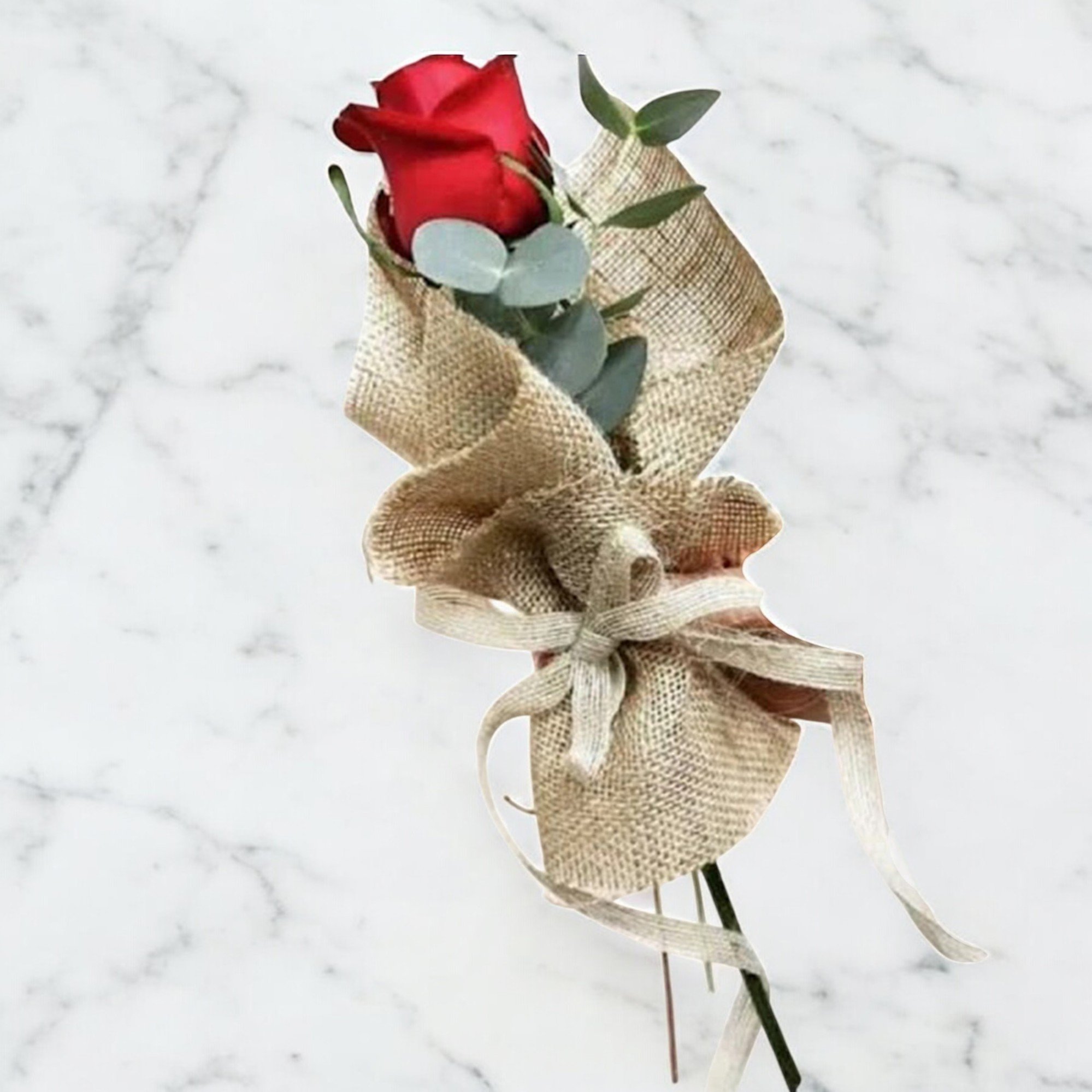 وردة جورية بتغليف خيش بطابع ريفي