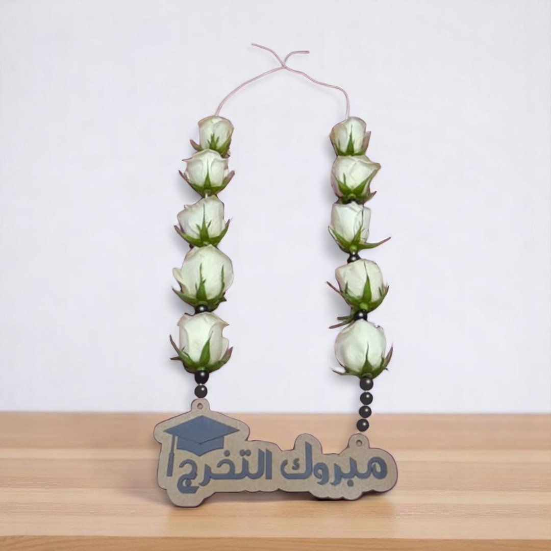 عقد ورد تخرج طبيعي مع اللولو و اكريلك مبروك التخرج الشفاف
