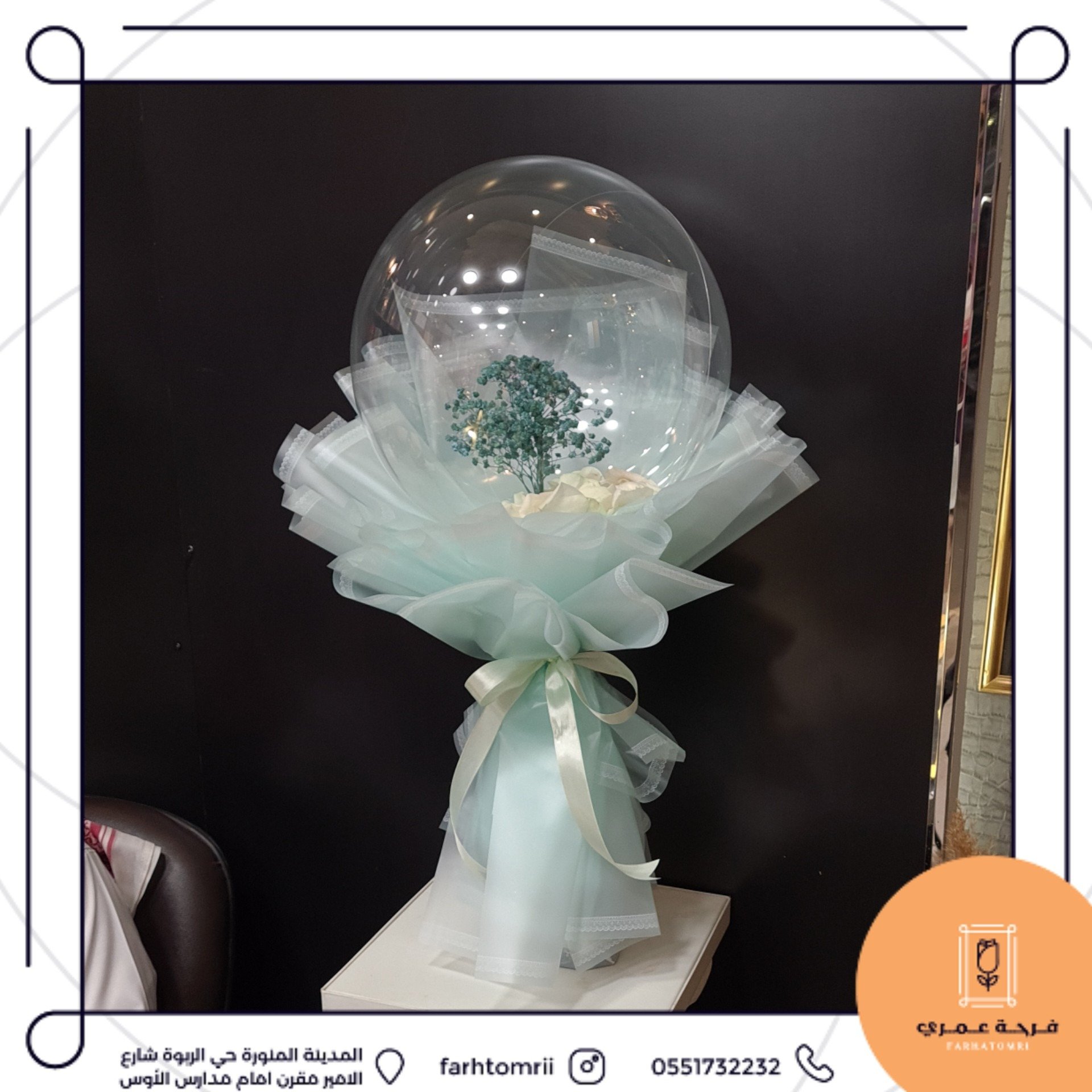بوكية البالون الشفاف - يحتوي بالداخل على بتلات الزهور والجبسو فيليا مع إضافة العبارة المطلوبة على البالون