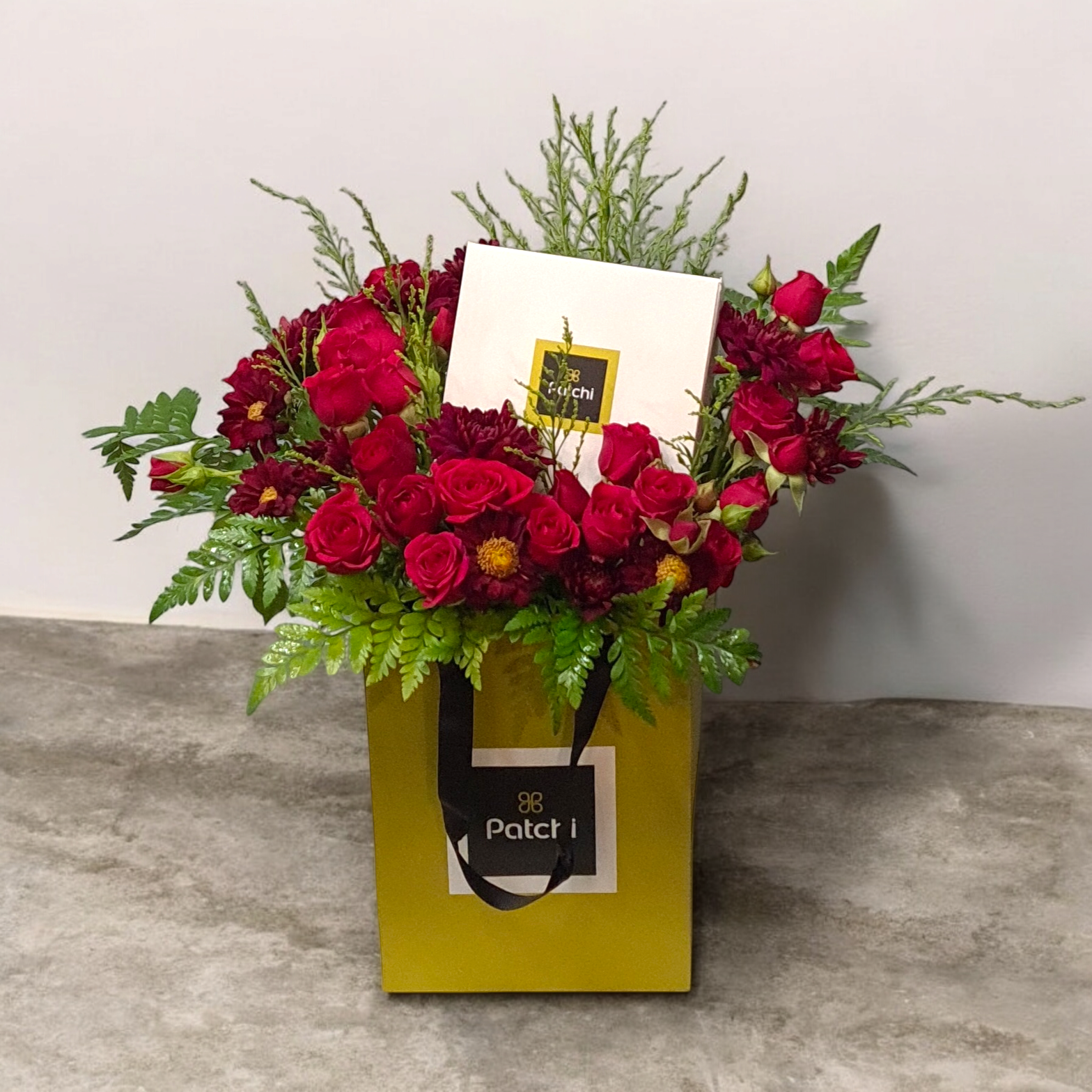 كيس شكلاته باتشي مع الزهور المتنوعة