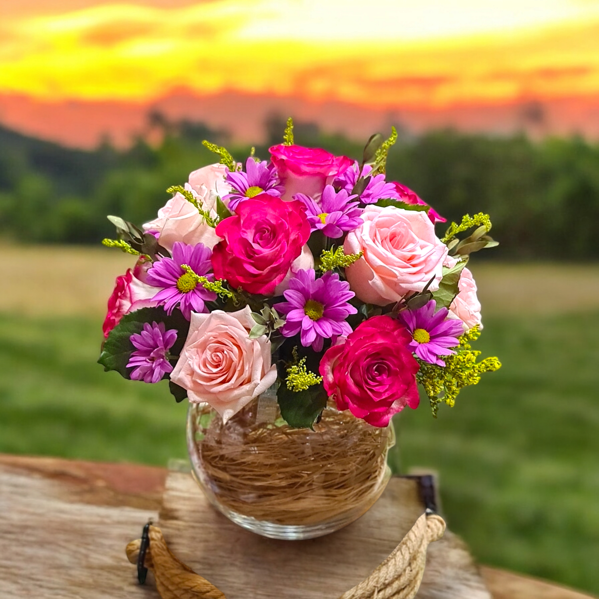 فازة ورد طبيعي دائرية