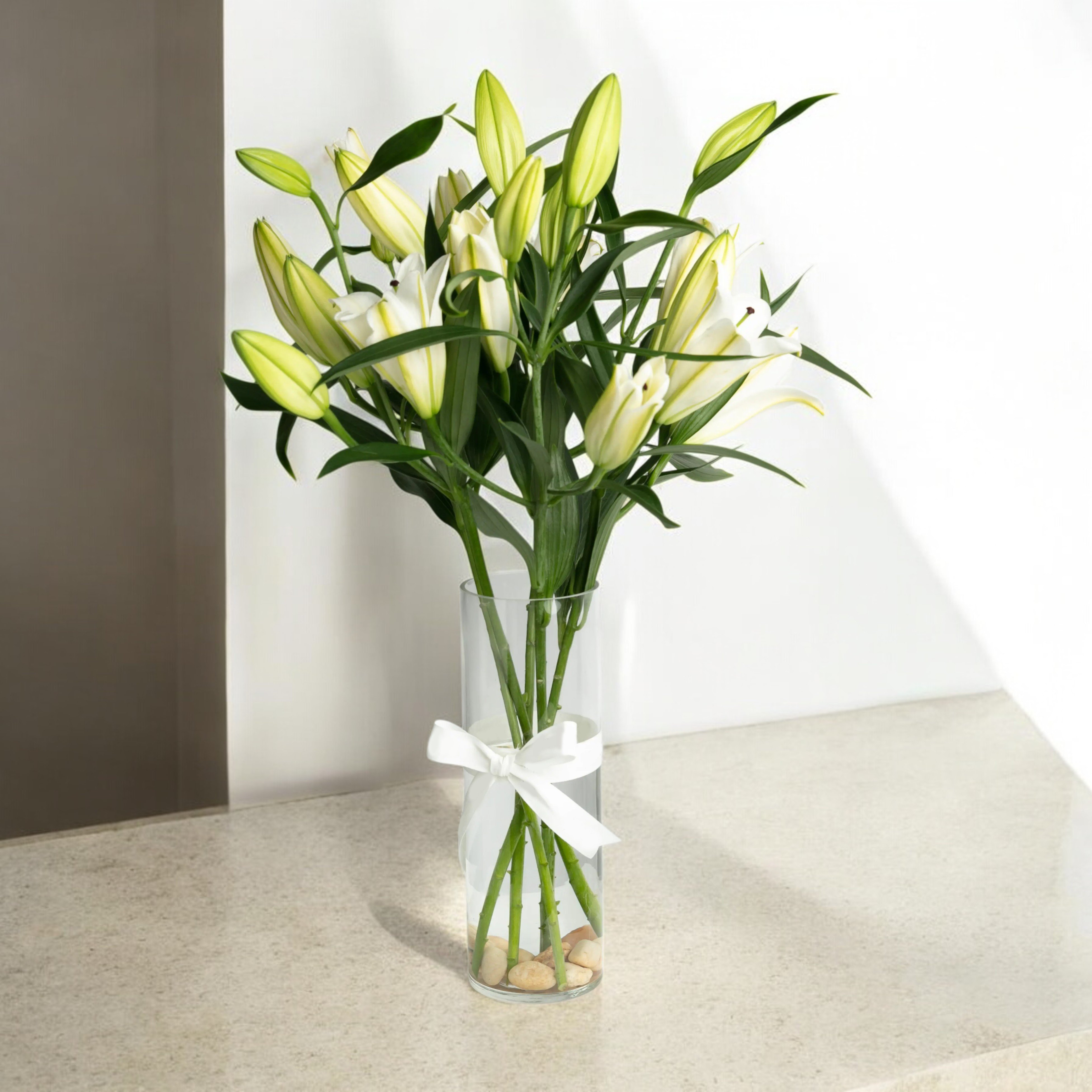 فازة زجاجة من زهرة الكازبلانكا الليليوم الطبيعي و الأنيقة